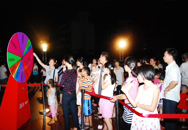 30分鐘后,搖獎(jiǎng)活動(dòng)開始。業(yè)主們排隊(duì)進(jìn)入搖獎(jiǎng)區(qū)。主持人介紹完活動(dòng)規(guī)則之后,業(yè)主們紛紛按捺不住想要一試手氣。