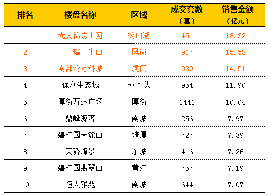 2014年,這些外地“大鱷”房企勢(shì)頭相當(dāng)猛,前10熱銷(xiāo)樓盤(pán)中,萬(wàn)科、萬(wàn)達(dá)、保利、碧桂園和恒大等占據(jù)半壁江山。據(jù)東莞中原提供數(shù)據(jù)顯示,今年光大錦 繡山河單盤(pán)吸金18.32億元排名全市第一,三正瑞士半山以15.58億元排名第二,南部灣萬(wàn)科城項(xiàng)目以14.51億元緊追其后,排名第三。